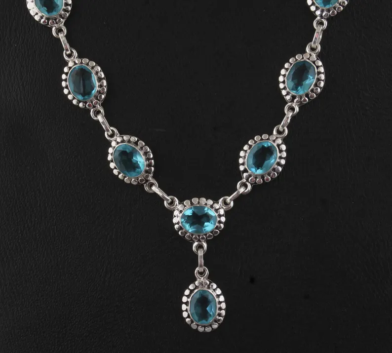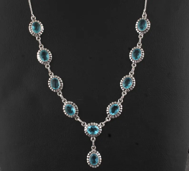 Blue Topaz Necklace, Oval Gemstone Necklace, 925 Sterling Silver Necklace Topaz Gemstone Necklace, December Birthstone Necklace, Gift Idea