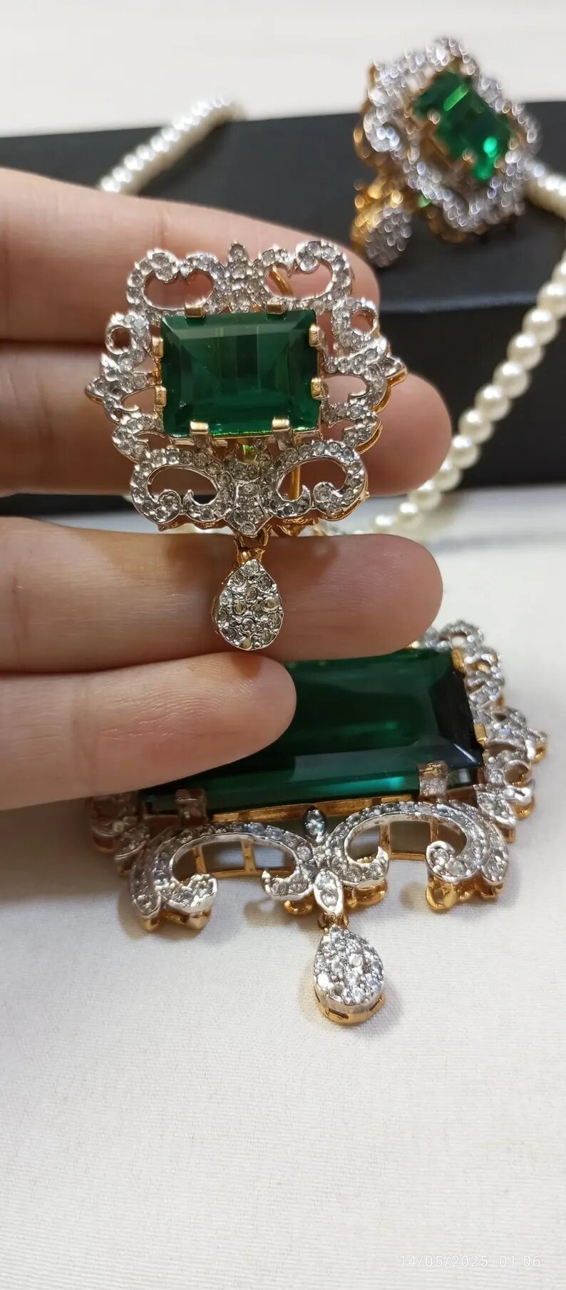 Bottle green gold plated set with semi precious stone , Handmade Set Women, Ladies Jewelry Set, Earring, Pendant, Ladies Set, wedding gift, jewelry set, jewelry gift