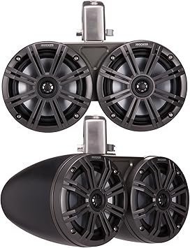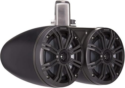 Kicker 45KMTDC65 Marine Tower Speakers with Swivel Clamps & 45KM654L Speakers Charcoal Grills with Black Enclosures
