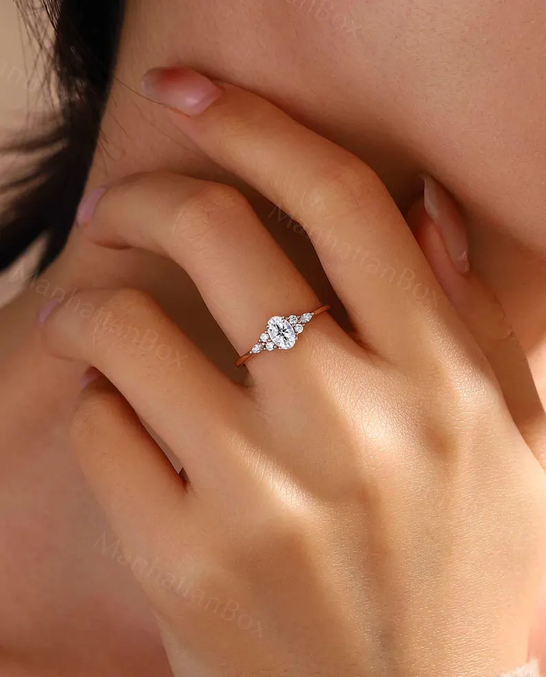 Vintage Oval Diamond Engagement Ring – Unique Rose Gold Moissanite Wedding Ring – Cluster Dainty Promise Ring for Women by ManhattanBox