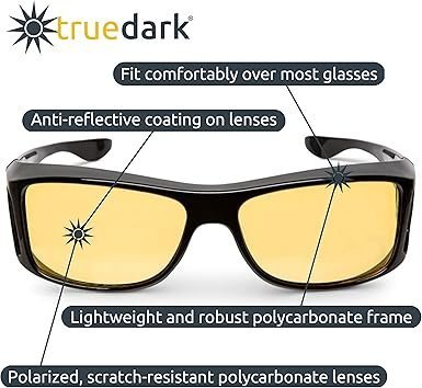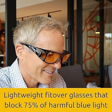 Visit the TrueDark Store TrueDark Daylights Amber Fitover Blue Light Blocking Glasses to Reduce Eye Strain and UV Glare – For Men & Women, Computer Screen, Gaming, TV, Phone – by Dave Asprey