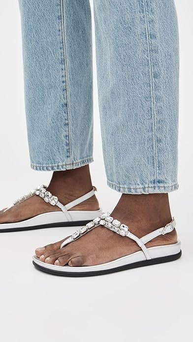 • Molded leather footbed, Metallic finish, Crystal embellishments