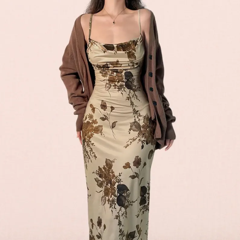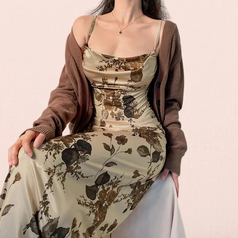 This Y2K Vintage Floral Print dress is designed to flow effortlessly with every step, the long silhouette flatters your figure while keeping you cool and comfortable.